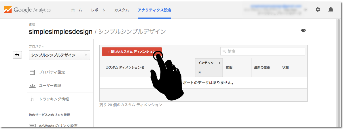 「新しいカスタム ディメンション」をクリック