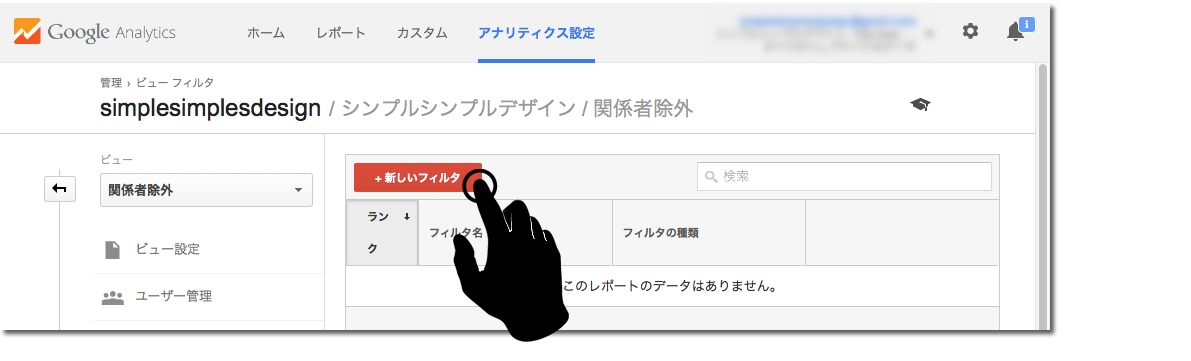 設定したビュー(ここでは「関係者除外」)を選択し、「フィルタ」をクリック