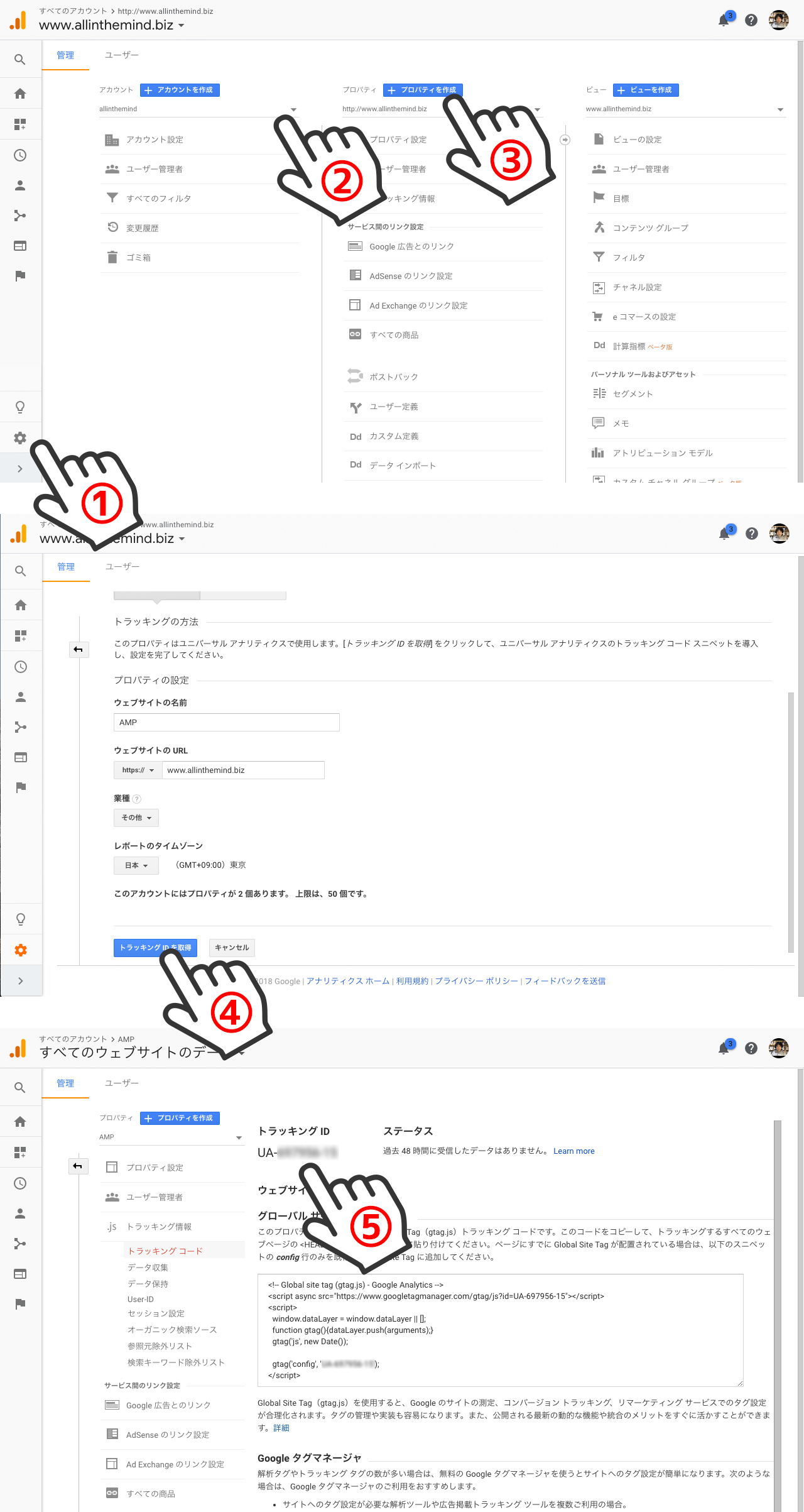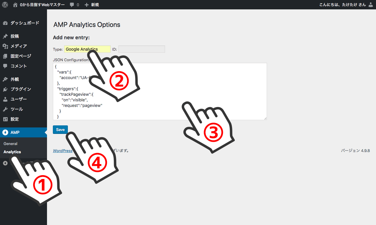 以上でAMPの設定は終わり。続いてGoogleアナリティクスの設定。